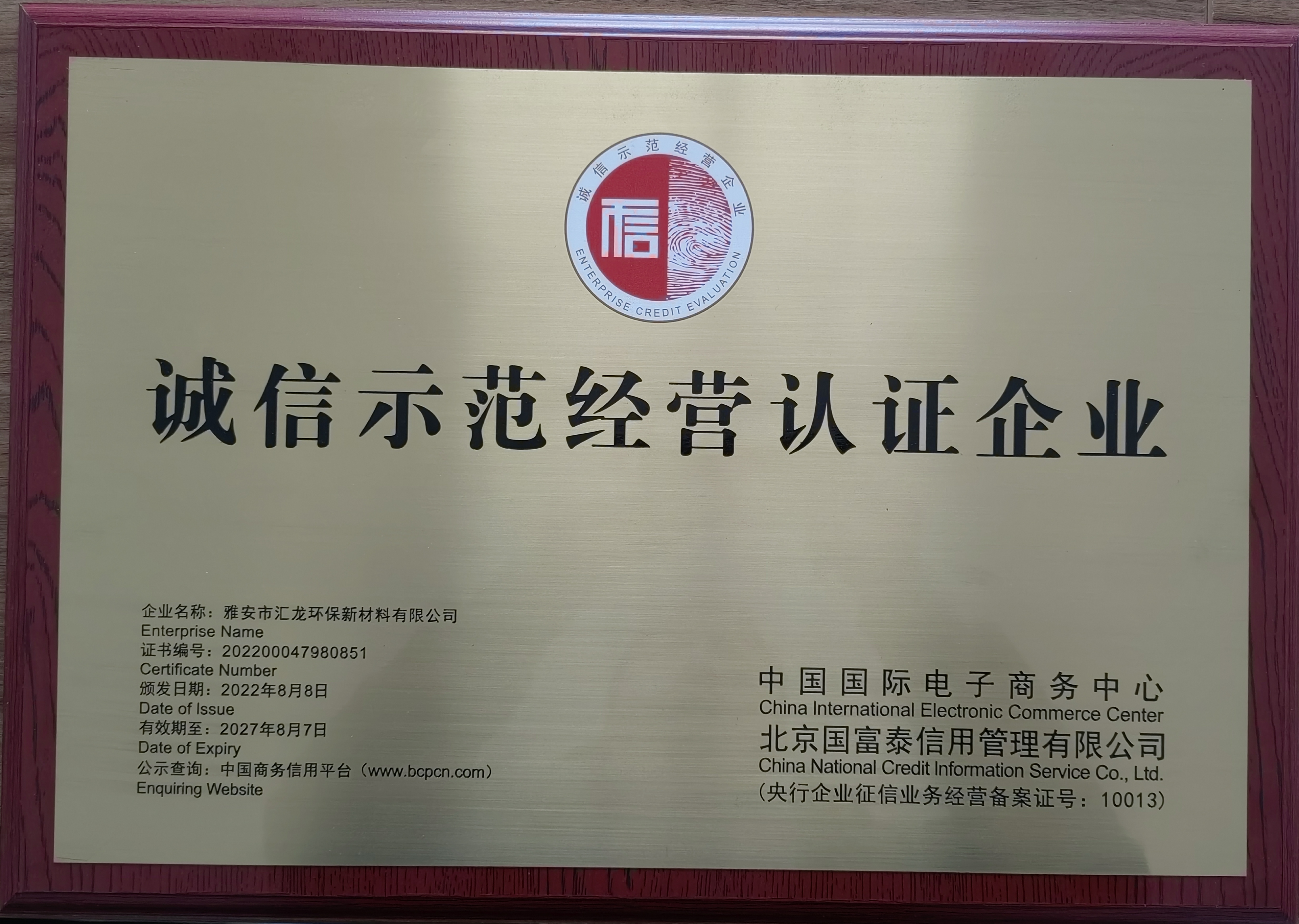 2022年度四川省環(huán)保誠信企業(yè)